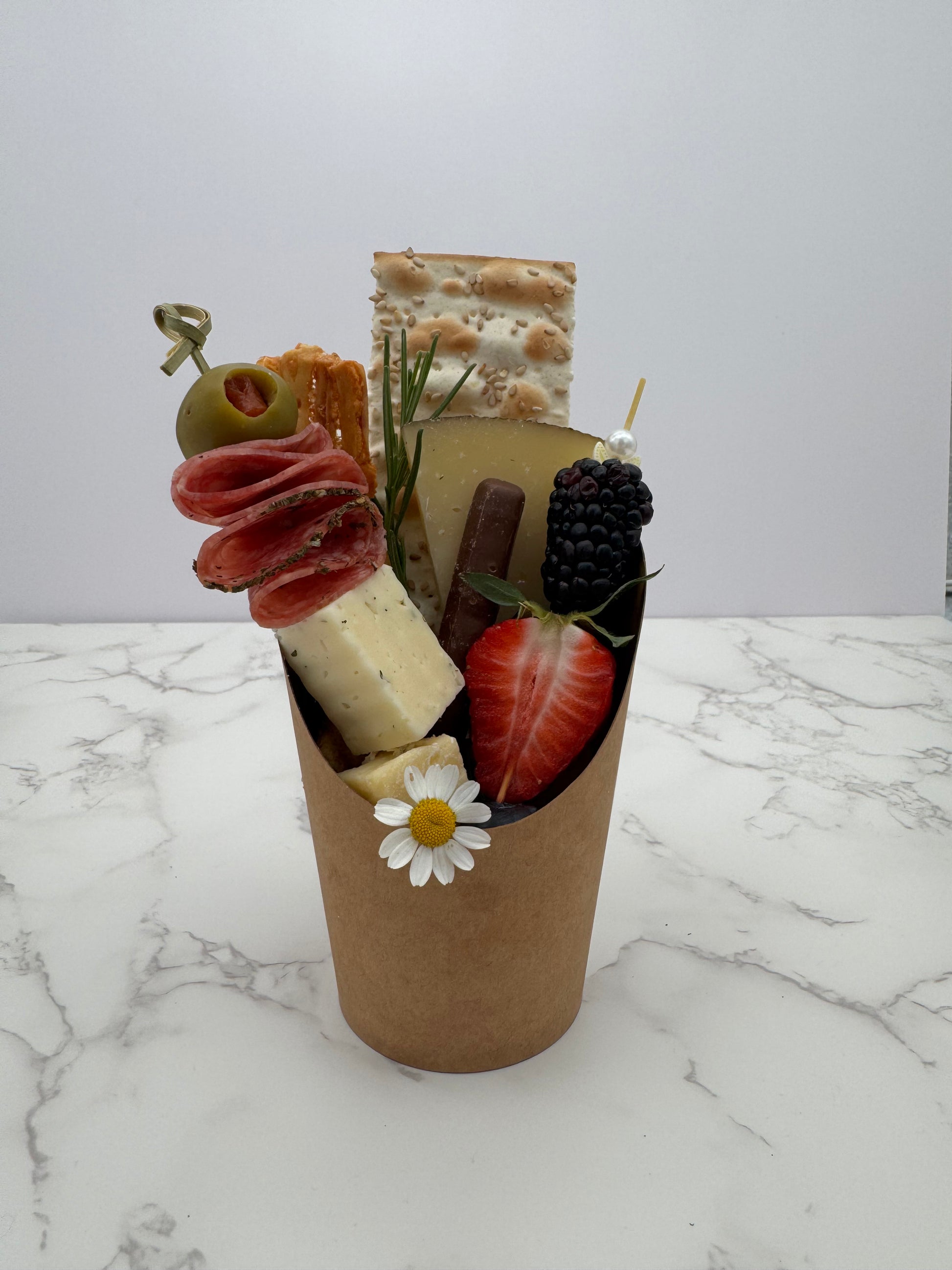 Perfectly portioned for one, our graze cups are packed with a curated mix of meats, cheeses, fruit, nuts, and crackers—ideal for mingling, meetings, or little indulgences.