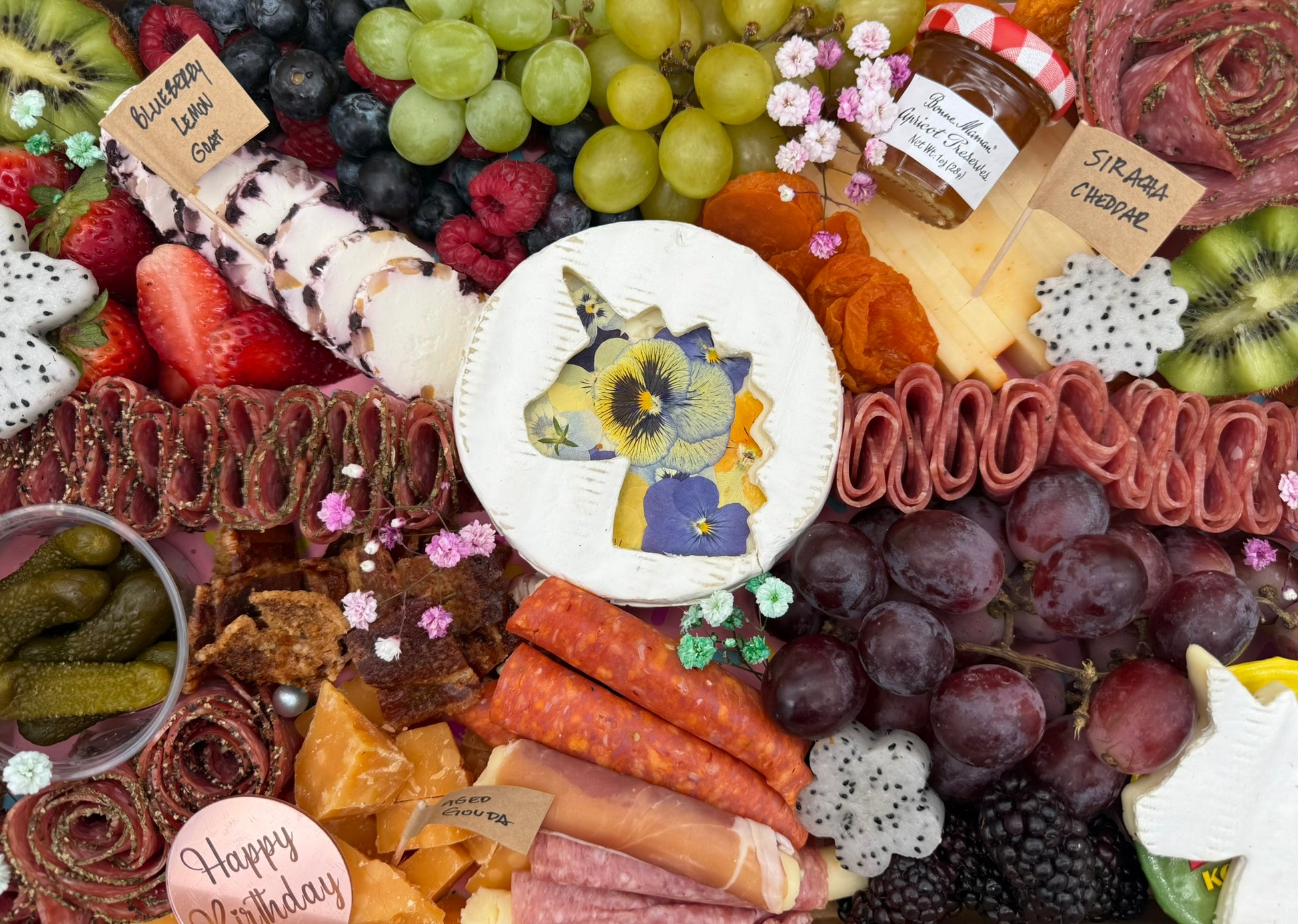 The party-ready graze box. Packed with a stunning variety of premium cheeses, meats, fresh fruit, jams, pickles, nuts, sweets, and crackers. Designed to impress for showers, open houses, or group gatherings.