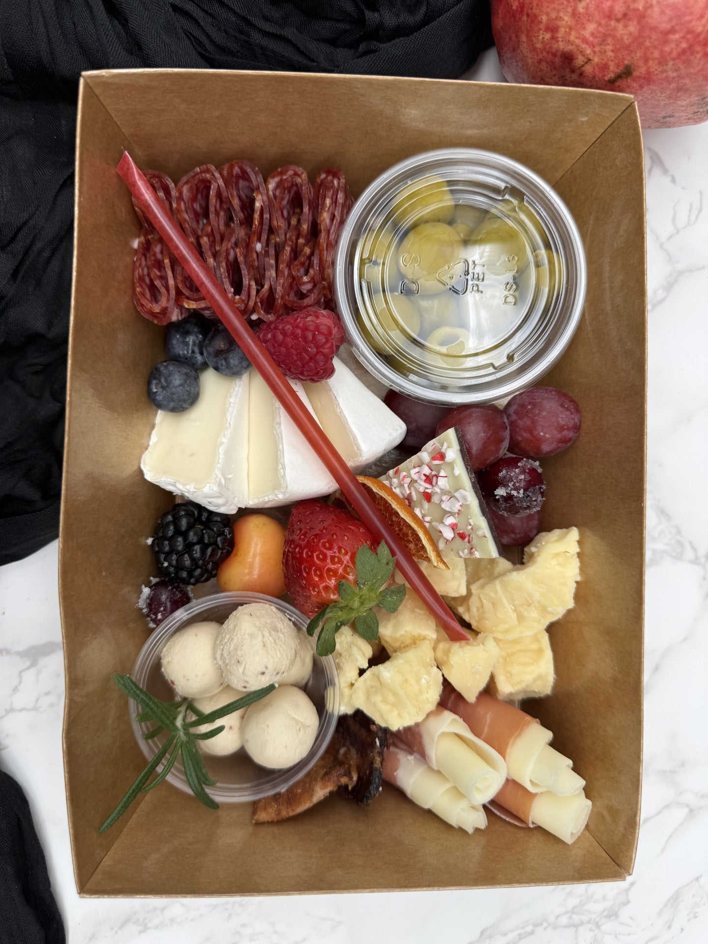 Each order includes a curated selection of 2–5 items per category (meats, cheeses, produce, accompaniments), depending on size. All selections are chef’s choice unless you add upgrades or request customizations.